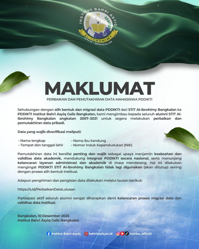 Sehubungan dengan alih bentuk dan migrasi data PDDIKTI dari STIT Al-Ibrohimy Bangkalan ke PDDIKTI Institut…