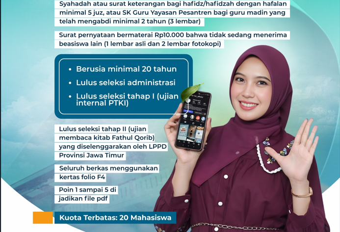 - Syahadah (minimal hafalan 5 juz) atau SK Guru Yayasan Pesantren (masa pengabdian minimal 2 tahun)